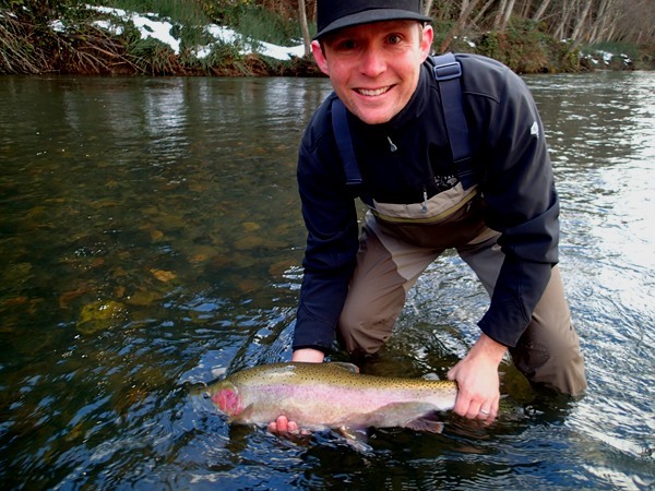 Winter Steelheading continues on…we’re still seeing New Wild Winter Steelhaed push into the Trinity, the numbers don’t seem to be quite as good as they were a couple weeks ago but still good fishing. We’ve had a bit of rain and snow over the past week, water flows are up and a little color has been added, water temps have dropped a few degrees over the past week, that may have slowed the fishing a bit. I think Swinging for Winter Steelhead on the Trinity will be Well Worth the effort for at least a couple more weeks.Tight Lines…