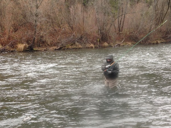 Winter Steelheading continues on…we’re still seeing New Wild Winter Steelhaed push into the Trinity, the numbers don’t seem to be quite as good as they were a couple weeks ago but still good fishing. We’ve had a bit of rain and snow over the past week, water flows are up and a little color has been added, water temps have dropped a few degrees over the past week, that may have slowed the fishing a bit. I think Swinging for Winter Steelhead on the Trinity will be Well Worth the effort for at least a couple more weeks.Tight Lines…